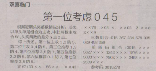 【双喜临门】第1635期预测信息<特区报>