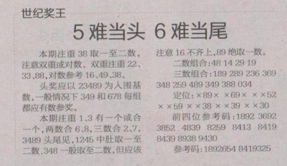 【世纪奖王】第1635期预测信息<特区报>