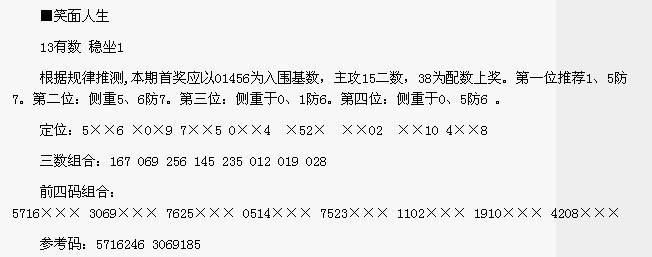 【笑面人生】第1637期预测信息<特区报>
