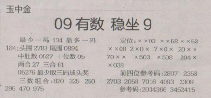 【玉中金】第1638期预测信息<特区报>