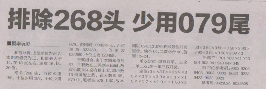 【概率玩彩】第1639期预测信息<特区报>