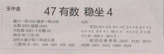 【玉中金】第1639期预测信息<特区报>