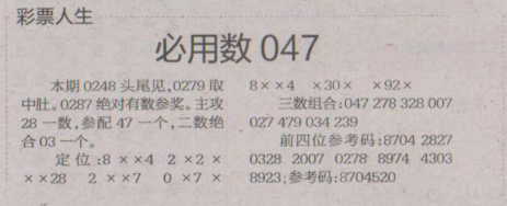 【彩票人生】第1641期预测信息<特区报>