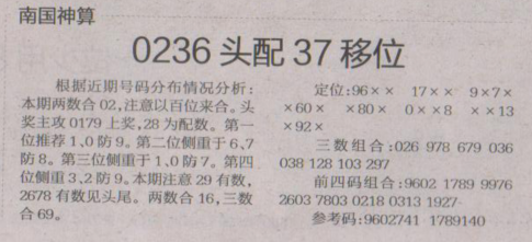 【南国神算】第1641期预测信息<特区报>