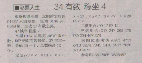 【彩票人生】第1643期预测信息<特区报>
