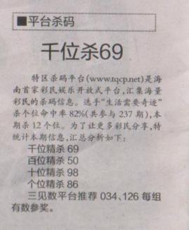 【平台杀码】第1643期预测信息<特区报>