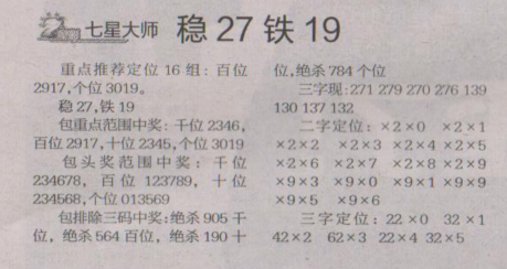 【七星大师】第1643期预测信息<特区报>