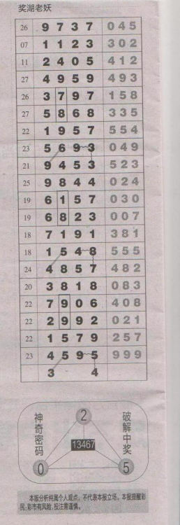 【奖湖老妖】第1644期预测信息<特区报>
