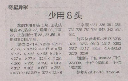 【奇星异彩】第1644期预测信息<特区报>