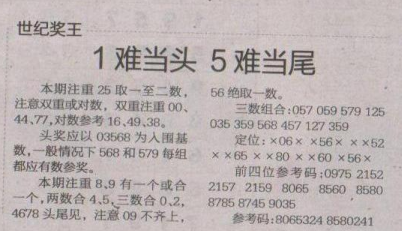 【世纪奖王】第1644期预测信息<特区报>