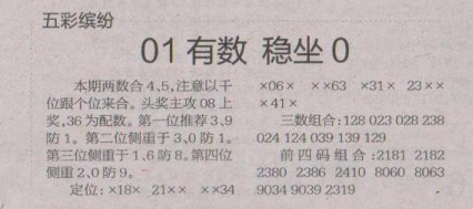 【五彩缤纷】第1644期预测信息<特区报>