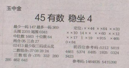 【玉中金】第1644期预测信息<特区报>
