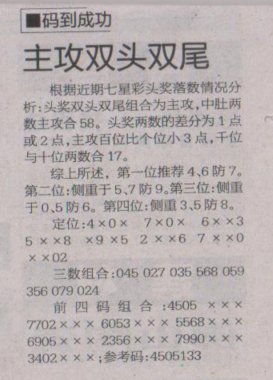 【码到成功】第1645期预测信息<特区报>