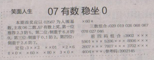 【笑面人生】第1645期预测信息<特区报>