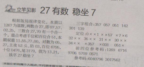 【立竿见影】第1646期预测信息<特区报>
