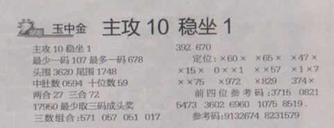【玉中金】第1646期预测信息<特区报>