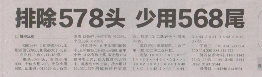 【概率玩彩】第1647期预测信息<特区报>