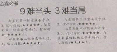 【金鑫必杀】第1647期预测信息<特区报>