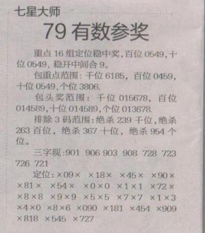 【七星大师】第1647期预测信息<特区报>