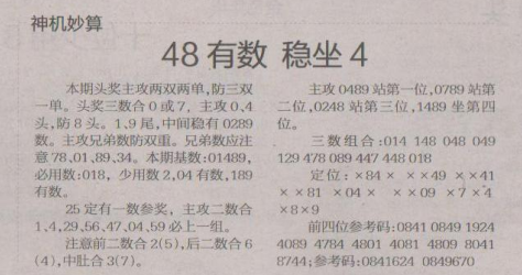【神机妙算】第1647期预测信息<特区报>