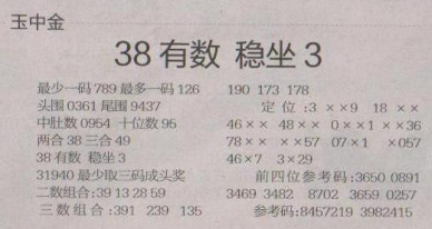 【玉中金】第1647期预测信息<特区报>