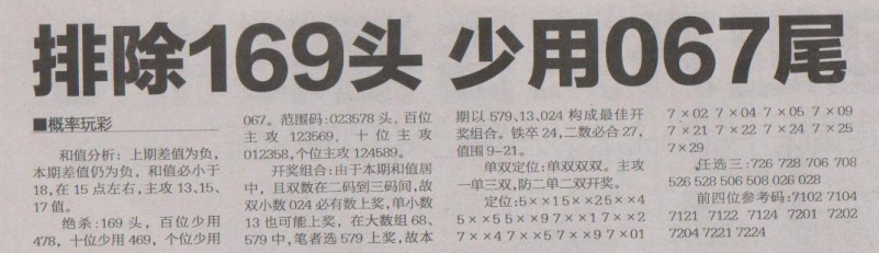 【概率玩彩】第1648期预测信息<特区报>