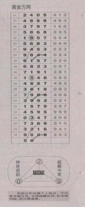【黄金万两】第1648期预测信息<特区报>