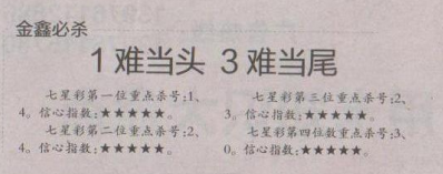 【金鑫必杀】第1648期预测信息<特区报>