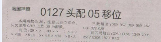【南国神算】第1648期预测信息<特区报>