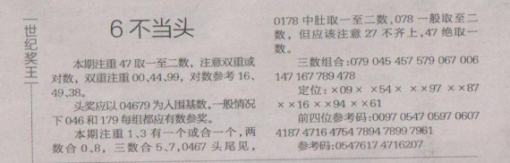 【世纪奖王】第1648期预测信息<特区报>