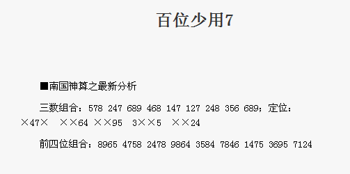 【南国神算】第1649期预测信息<特区报>