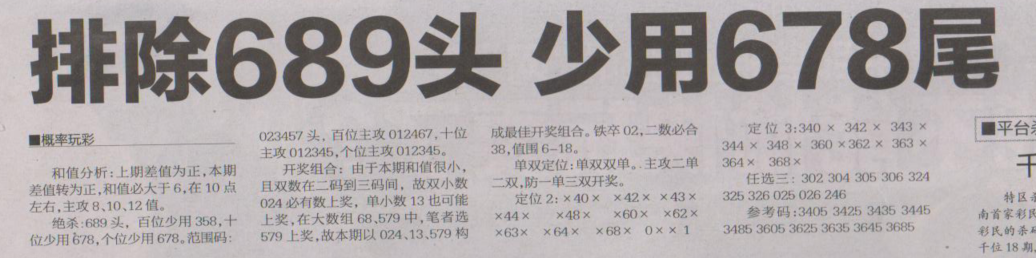 【概率玩彩】第1649期预测信息<特区报>