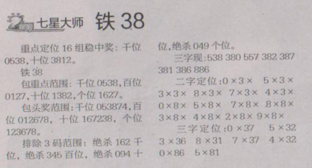 【七星大师】第1649期预测信息<特区报>
