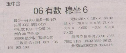【玉中金】第1650期预测信息<特区报>