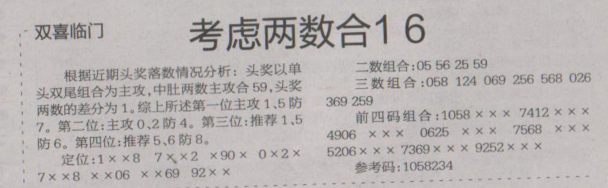 【双喜临门】第1651期预测信息<特区报>