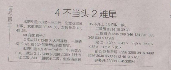 【世纪奖王】第1651期预测信息<特区报>