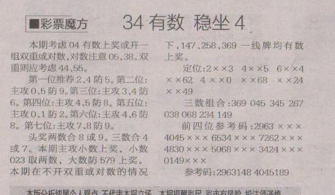 【彩票魔方】第1652期预测信息<特区报>