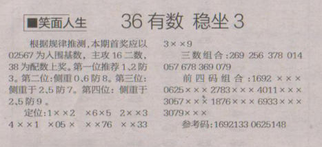 【笑面人生】第1652期预测信息<特区报>