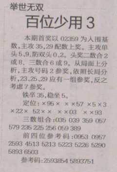【举世无双】第1653期预测信息<特区报>