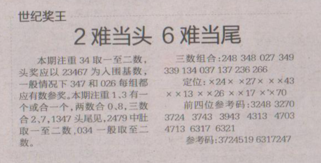 【世纪奖王】第1653期预测信息<特区报>