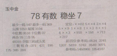 【玉中金】第1653期预测信息<特区报>