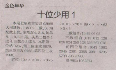 【金色年华】第1654期预测信息<特区报>