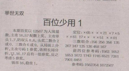 【举世无双】第1654期预测信息<特区报>