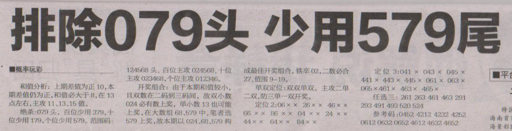 【概率玩彩】第1655期预测信息<特区报>
