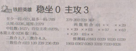 【铁胆英雄】第1655期预测信息<特区报>