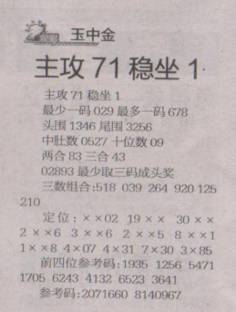 【玉中金】第1655期预测信息<特区报>