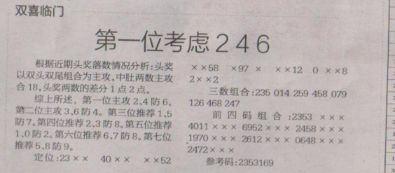 【双喜临门】第1656期预测信息<特区报>