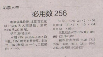 【彩票人生】第1656期预测信息<特区报>