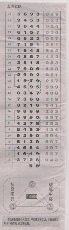 【奖湖老妖】第1656期预测信息<特区报>
