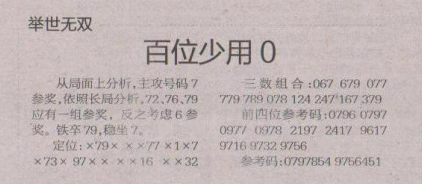 【举世无双】第1656期预测信息<特区报>